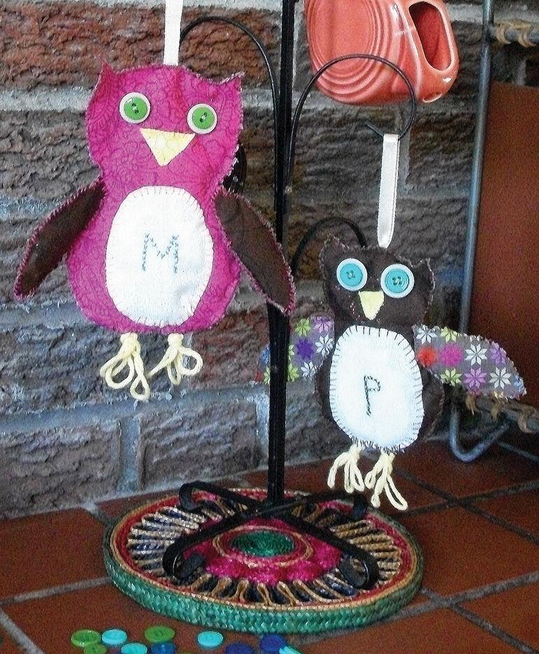 This whimsical gift is perfect for loved ones of any age—and it’s almost impossible to mess up. The more homemade-looking it is, the better. Choose any animal that can be represented with a few color blocks, like a bird, turtle, or fish. Cut out the animal’s base shape then cut out its wings/shell/fins using different fabrics. Sew these to the base shape with contrasting-colored thread— don’t worry about perfect stitches. Keep the little cloth pieces you trim off; you’ll use them later for stuffing. To make the animal really special, stitch on a year or monogram. Add button eyes. The owls I made for babies Molly and Parker have feet made from yarn loops. For the backing, lay the animal down on a contrasting piece of fabric and trace the same shape but a little larger. It’s easier to trim as you go than to realize, too late, that the back is too small. Sew the animal to the backing, leaving the top open to add your “stuffing,” which is more fabric scraps (or anything else you’ve got: cotton balls, shredded junk mail, a cut-up stray sock). Right before you close it up, tie a loop in a piece of ribbon and sew the knot inside. Now this little creature can take its place on the tree year after year!