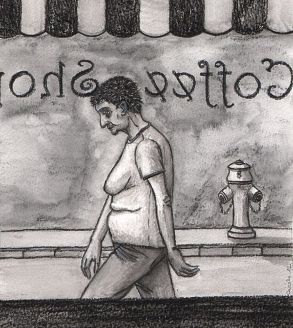 RS : For “Thick on the Wet Cement,” the object of the speaker’s curiosity (the walking woman) is based on a real woman in Morgantown, West Virginia. For all I know she is still there. She doggedly walked around town every day, rain or shine. She never smiled or greeted anyone. I always watched her, wondering what kept her so focused, and what kept her from being friendly. I was a little like the speaker of the story, but unlike that speaker, I never had the courage to say hello to her. The story came out of that speculation. I write a bit of poetry, too, which is how the haiku ended up in the story. I thought, that would be the only way someone could really communicate with “The Walker.”